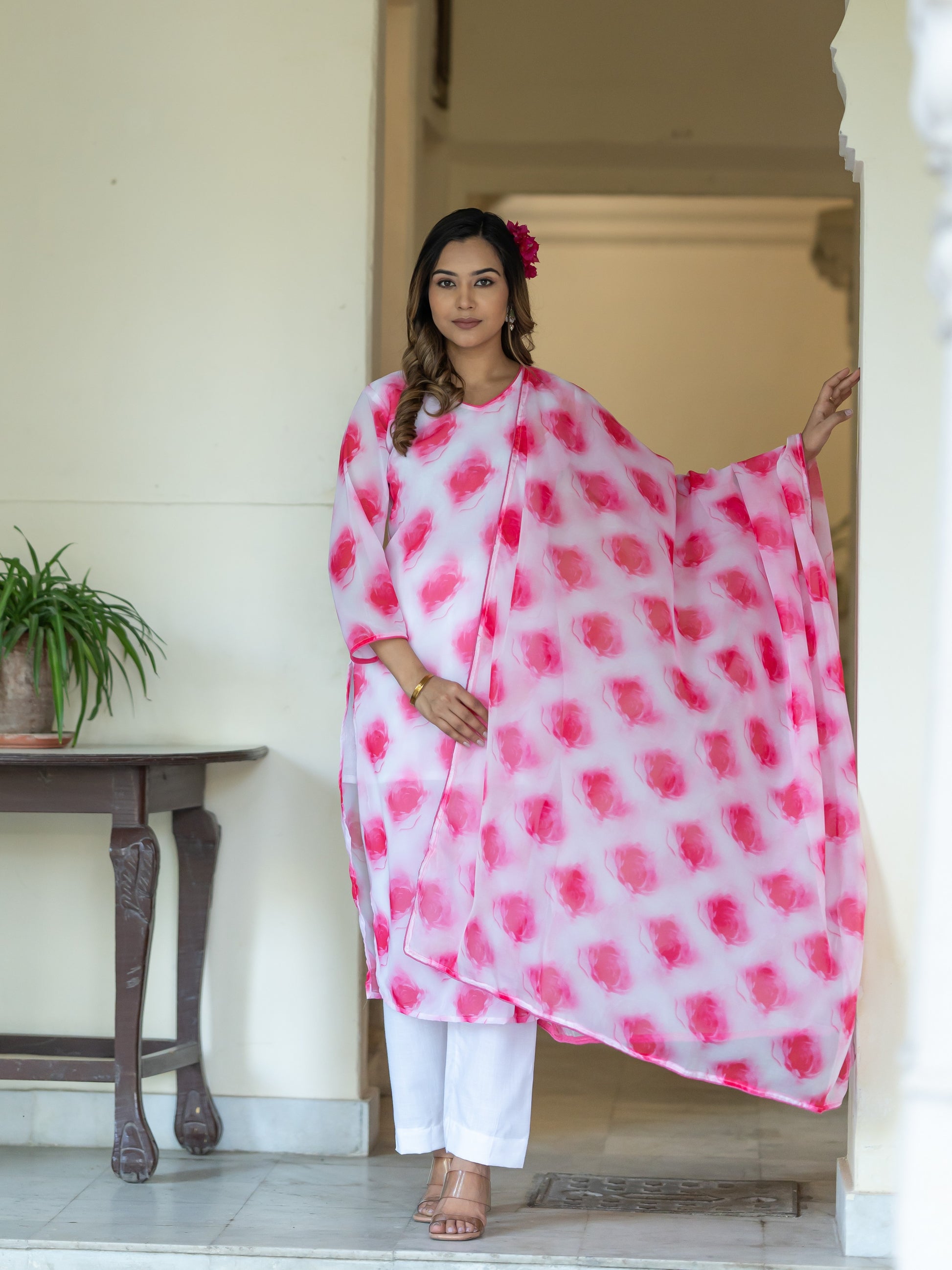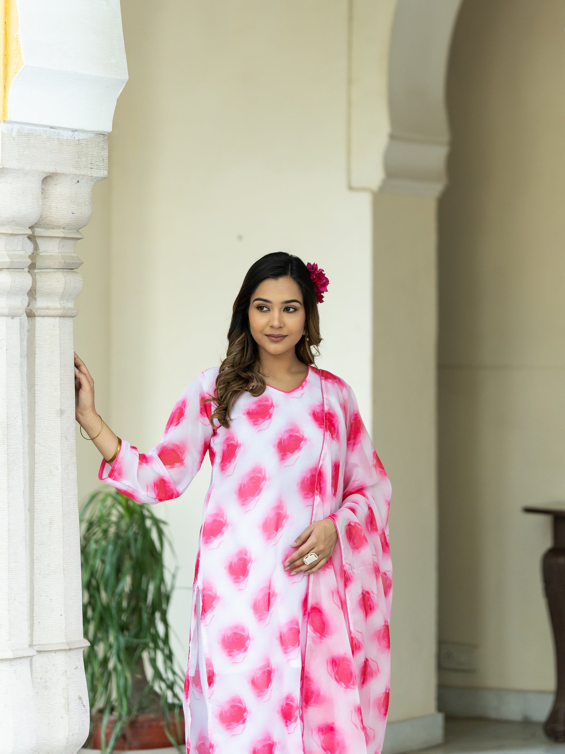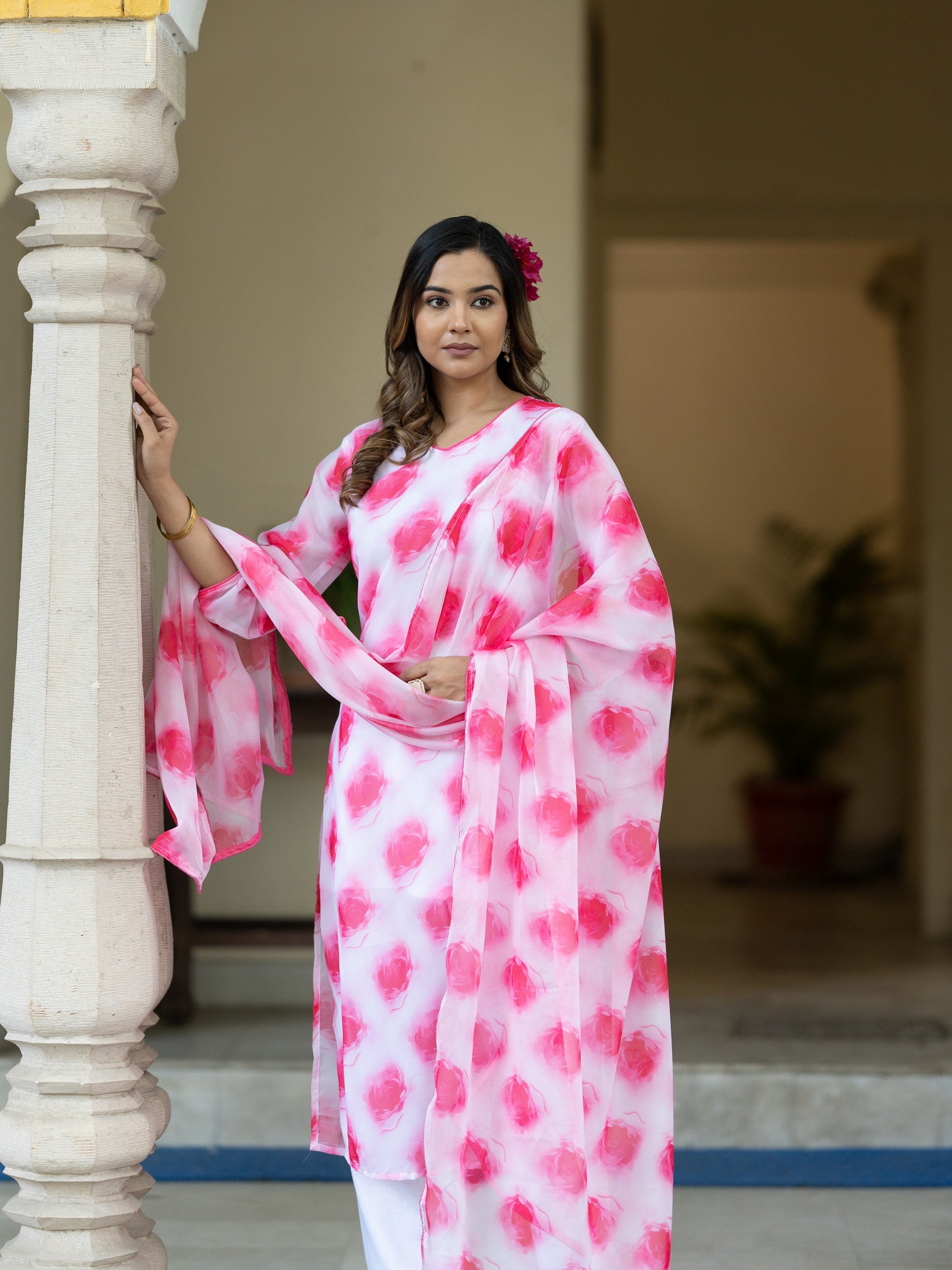 Aspora Pink Floral printed Straight Kurta With Trousers & Dupatta