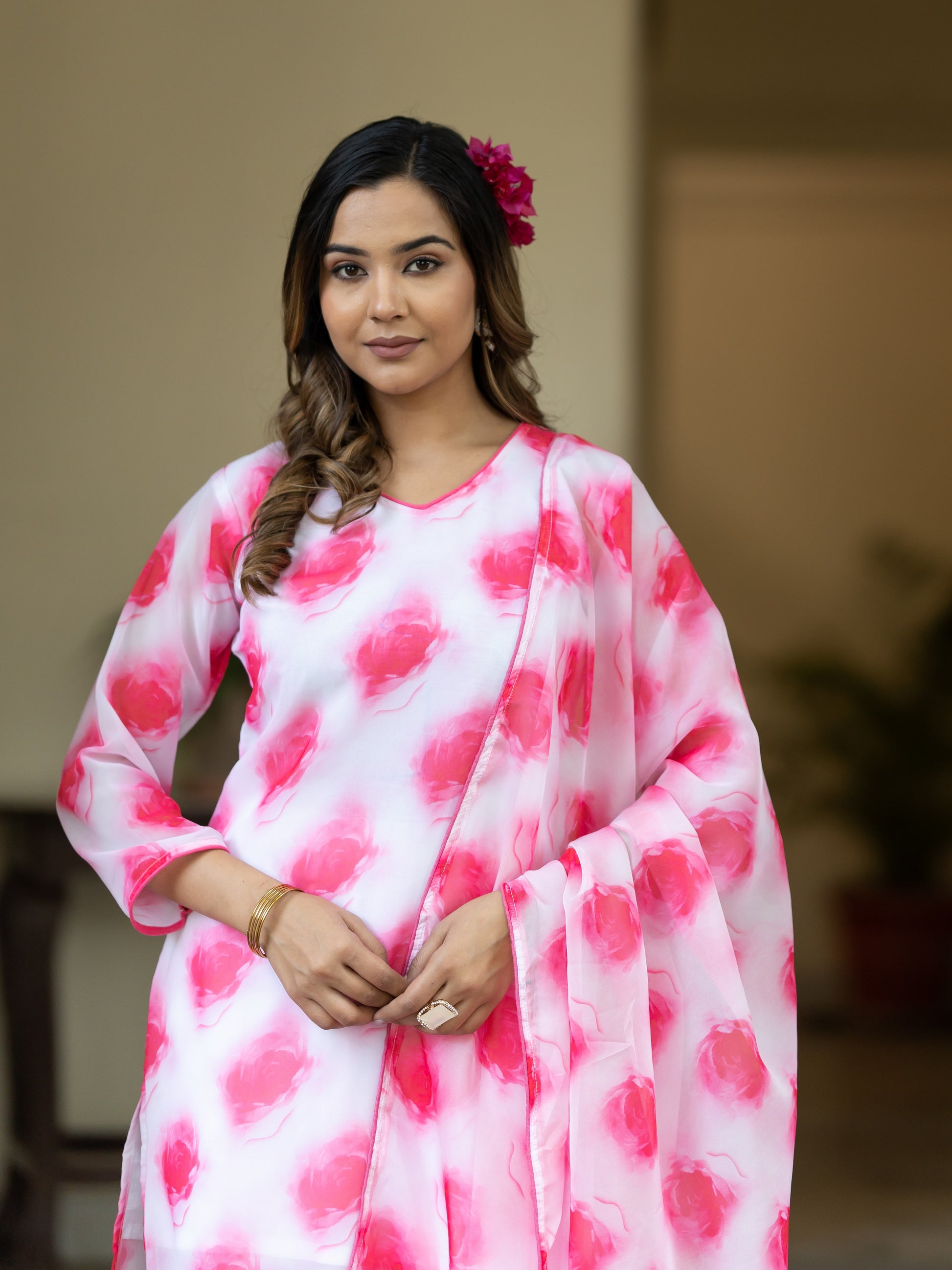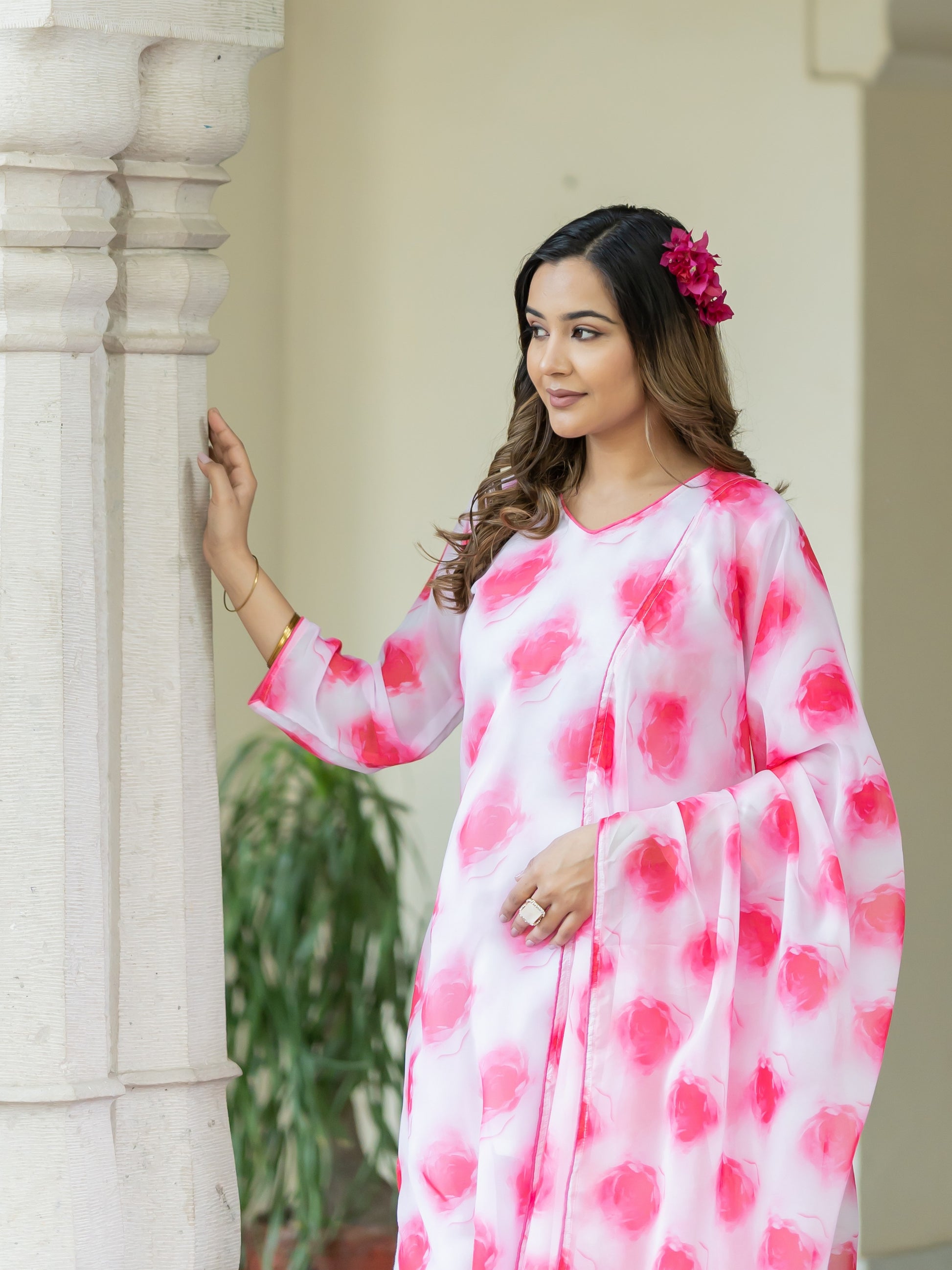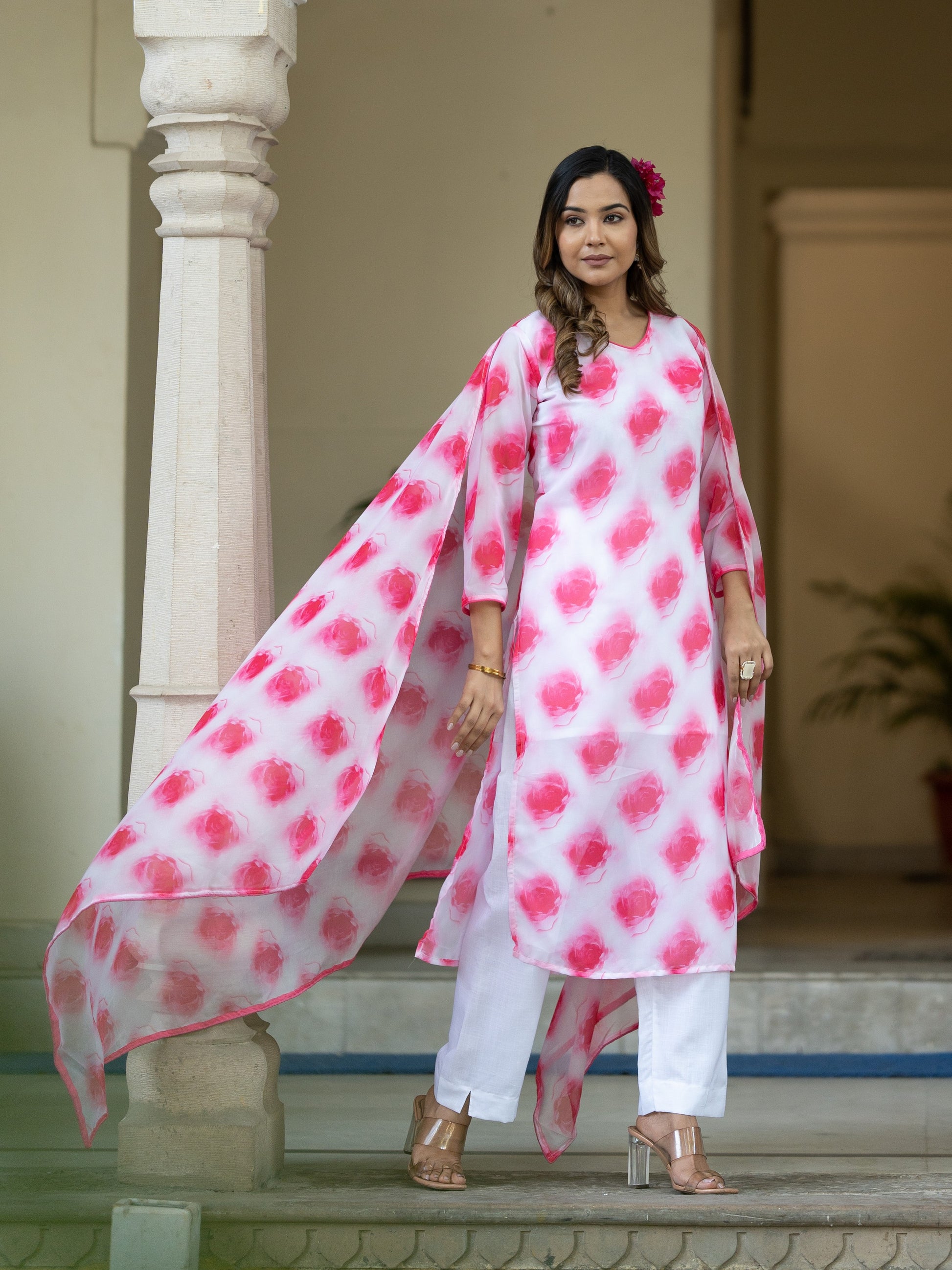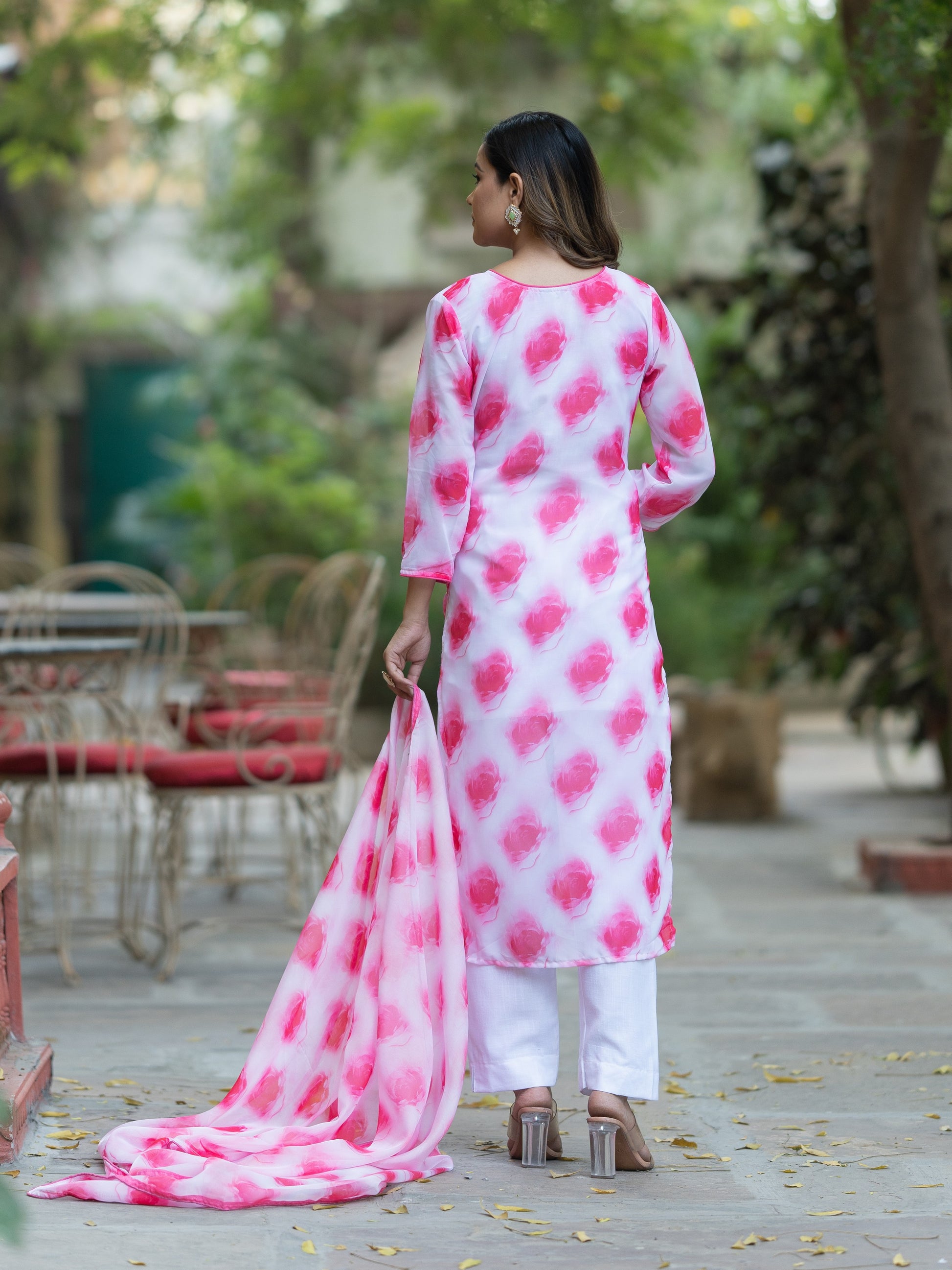 Aspora Pink Floral printed Straight Kurta With Trousers & Dupatta