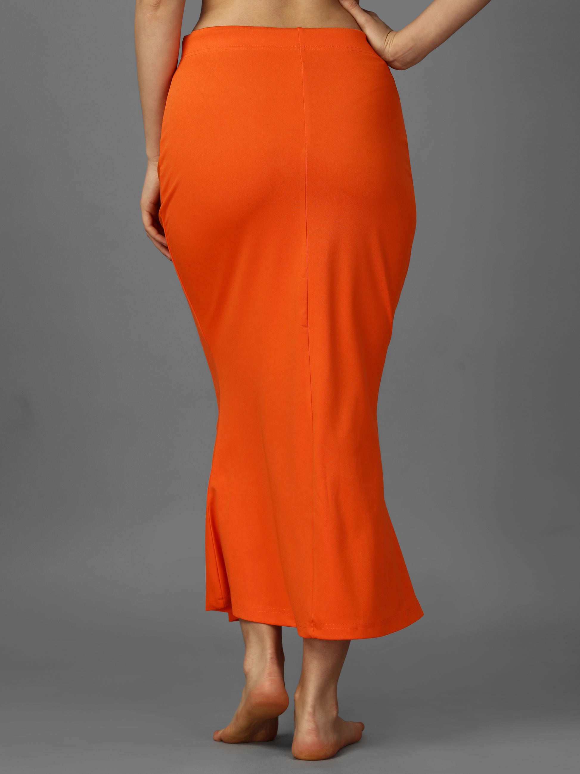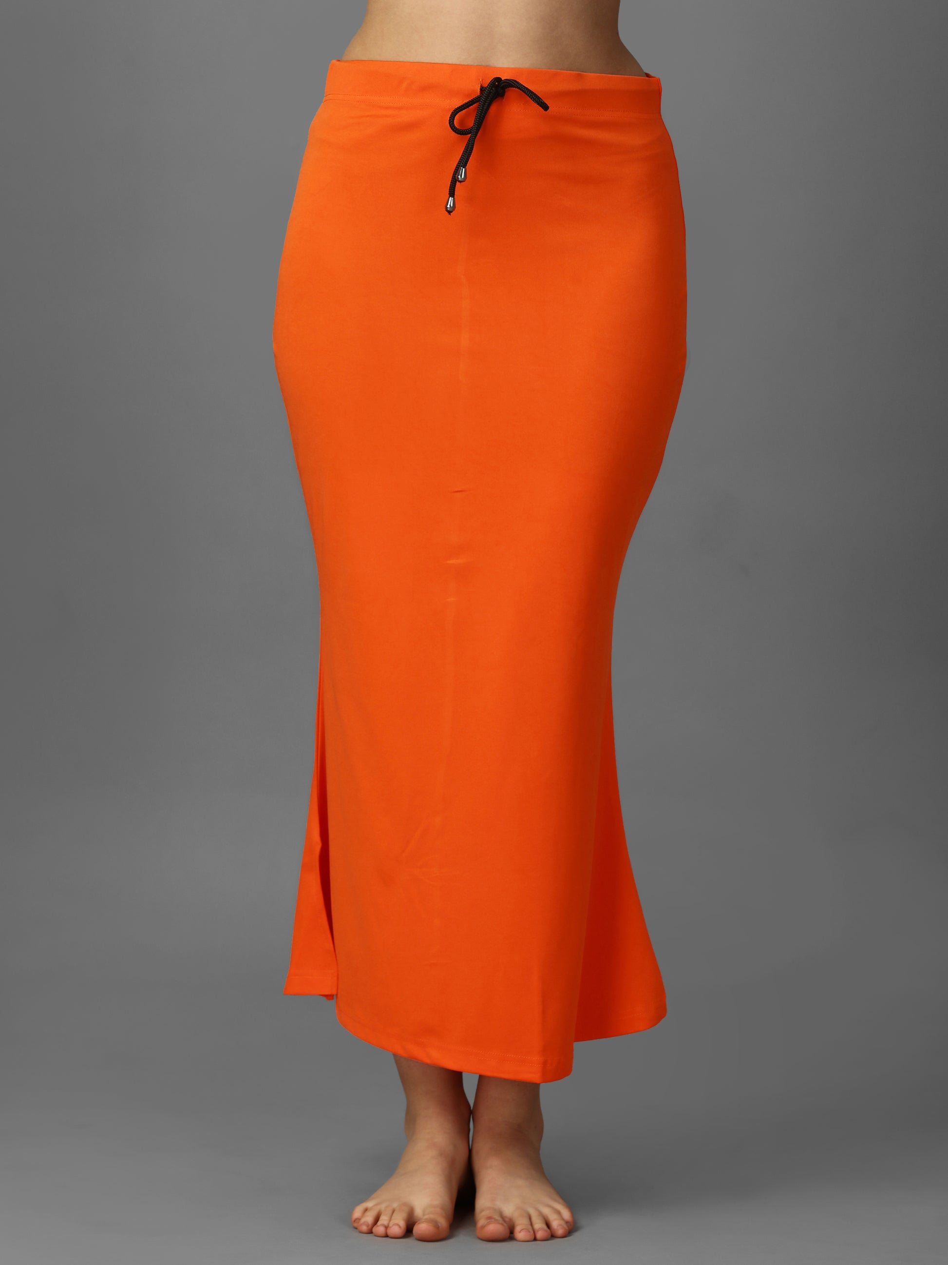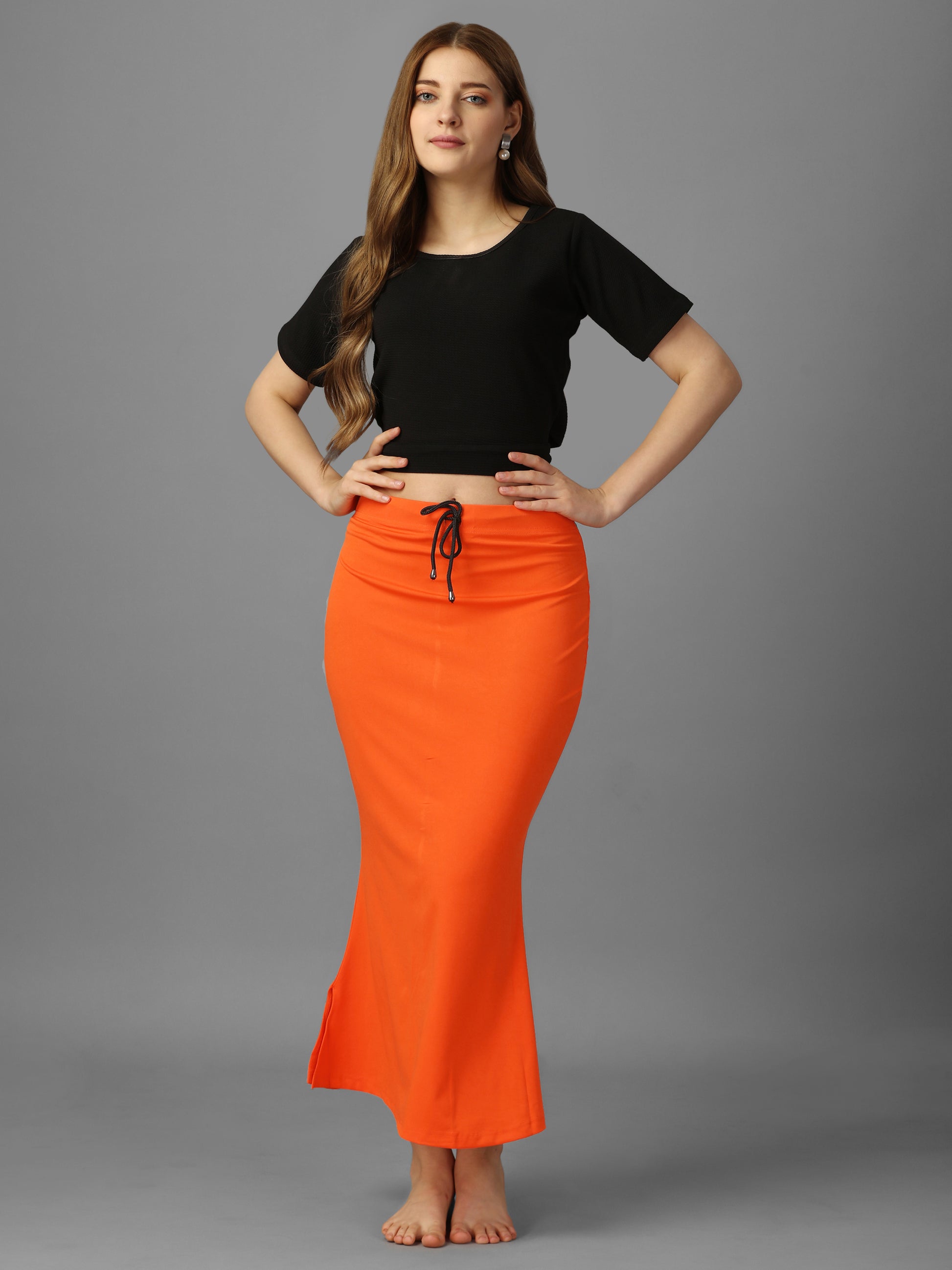 Orange knitted shapewear with an elasticated waistband and drawstring closure, designed for comfort and a sleek fit.