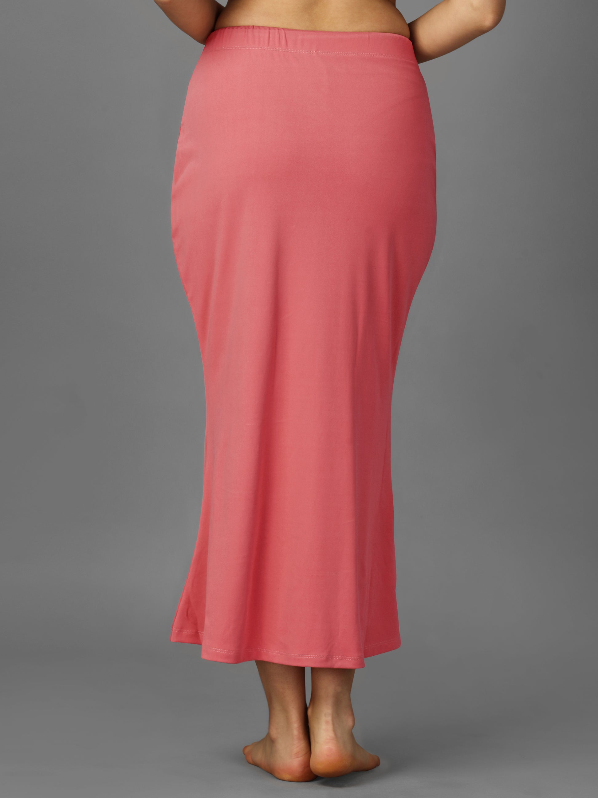 Peach knitted shapewear with an elasticated waistband and drawstring closure, designed for comfort and a sleek fit.